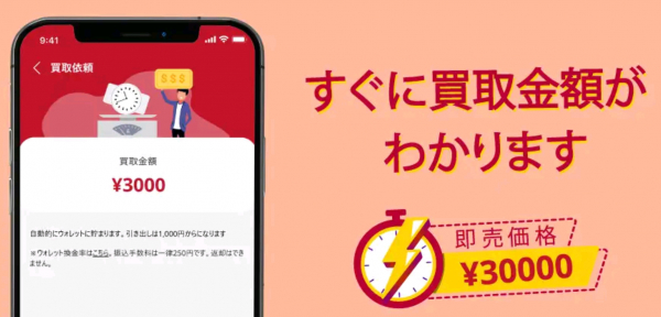 ウォレット換金率は、\1,000~9,999までは1.0倍、\10,000以上から換金率が増え、\50,000~59,999では1.5倍、\100,000以上になると2.0倍~の換金率となり、買取に出してウォレットに貯めれば貯めるほど換金率が上がる仕組みとなっています。