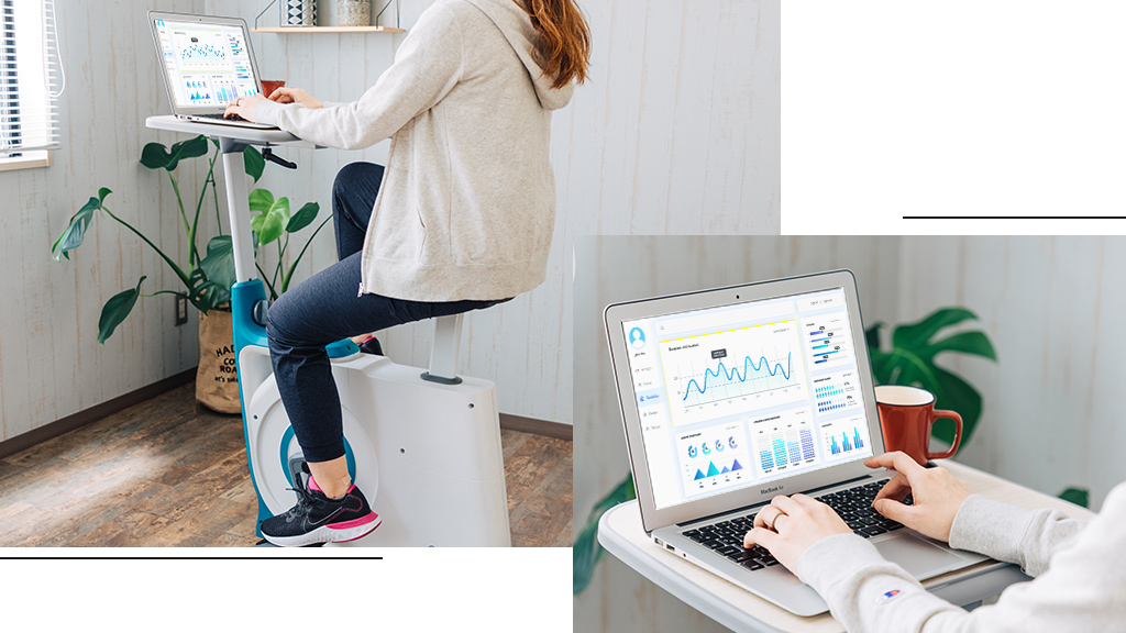 ・デスク付きのエクササイズバイクで作業をしながら運動が可能