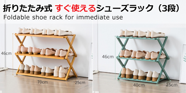 1)品名:折りたたみ式 すぐ使えるシューズラック(3段)