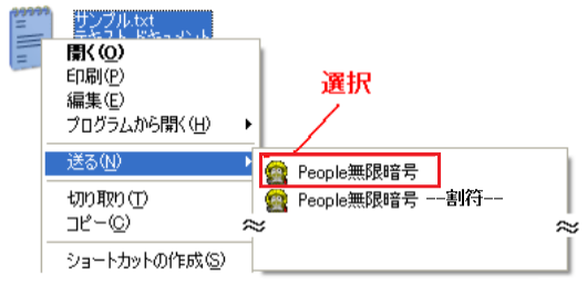 暗号化したいファイルを選択しマウス右ボタンから「送る」を選んでください。これだけで暗号化します。