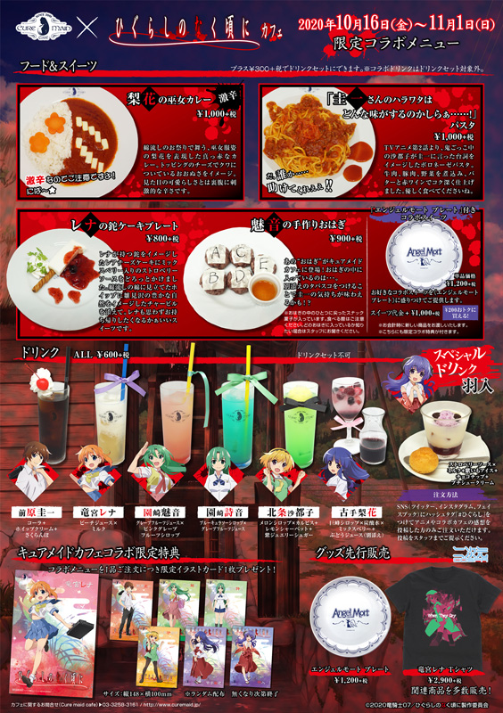 10月から放送がスタートしたTVアニメ『ひぐらしのなく頃に』と『キュアメイドカフェ(ジーストア・アキバ6F)』のコラボが10月16日(金)~11月1日(日)期間限定で開催いたします。