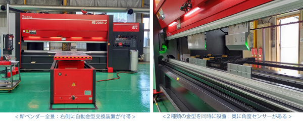 その解決策として、段取り時間が大幅に削減できると共に、多能工化も実現する自動金型交換装置付ベンディングマシンの導入が検討され、革新的事業展開設備投資支援事業を申請。採択されたことを受け、新ベンダーを導入するに至りました。