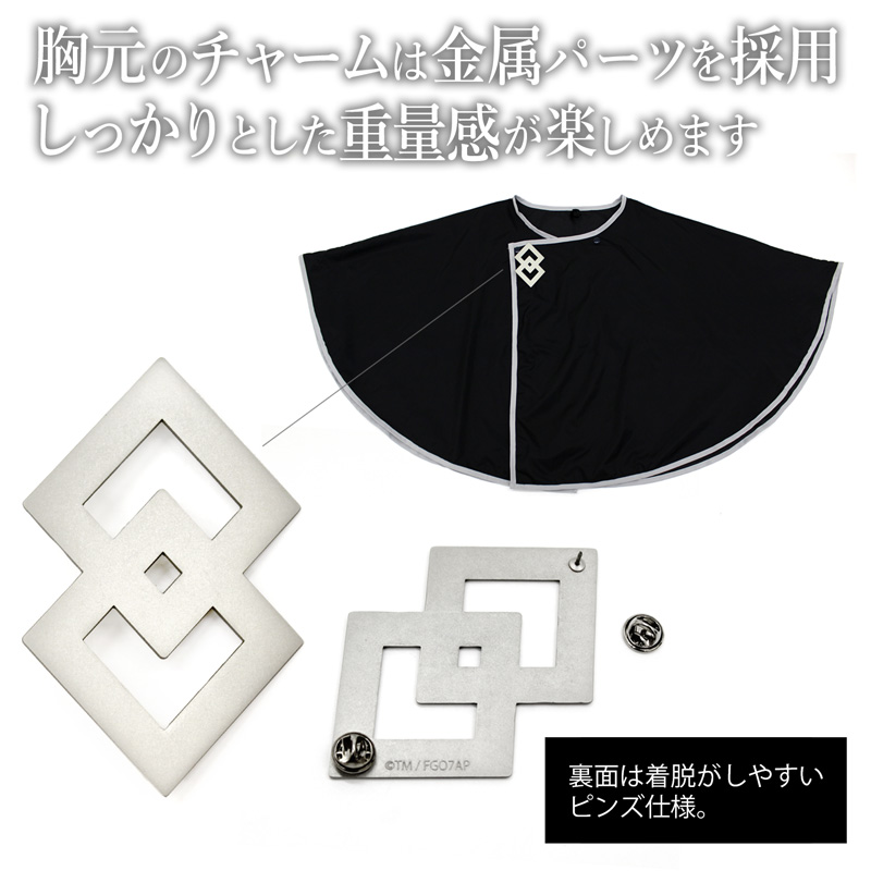 金属仕様で再現した重厚感のある胸元のパーツも世界観が楽しめるアイテム。