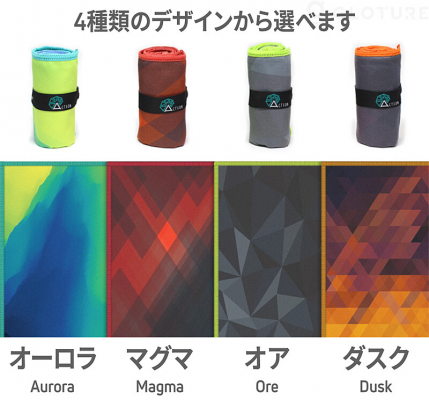 一般的には無地が多いマイクロファイバータオルですが、Acteonのジムタオルは4種類のデザインから選ぶことができます。