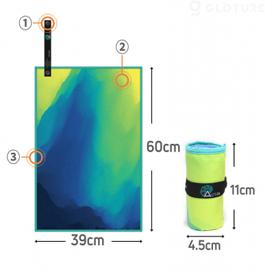 広げると約60×39cmのごく一般的なタオルですが、折りたたむと 約11×4.5cmと超小型に。また約45gと超軽量なので、持ち運ぶ際も重くありません。