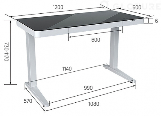 テーブルの表面には傷つきにくい厚さ5mmの強化ガラスを使用。