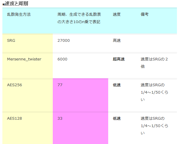 乱数は品質、速度、周期の長さの3つで性能を決めます。