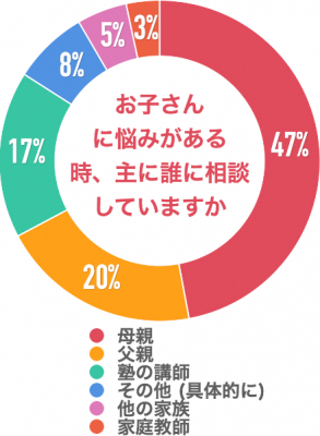 アンケート結果では、「母親」が47%、続いて「父親」が20%、「塾の講師」が17%、「その他(具体的に)」が8%、「家庭教師」が3%でした。「その他(具体的に)」と答えた方からは、以下のような回答がありました。