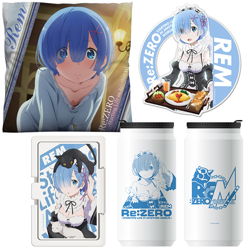 会場では、クッションカバーやサーモマグなど、お部屋でレムとくつろげる「LIFEセット」(\5,000+税)や宿泊先でも可愛いレムが傍にいてくれる「おとまりセット」(\5,000+税)を先行販売。