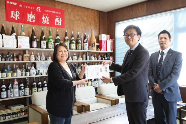 その結果、全国で20,000本を超える焼酎をご購入いただき、2020年10月26日(月)に球磨焼酎酒造組合へ1,082,000円を寄付する事ができました。