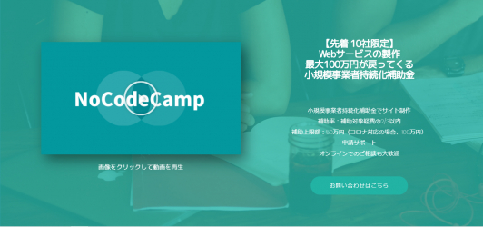 合同会社NoCodeCampは2020年10月25日、今話題のNoCode(ノーコード) × 小規模事業者持続化補助金によるWebサービス作成のプランを発表しました。