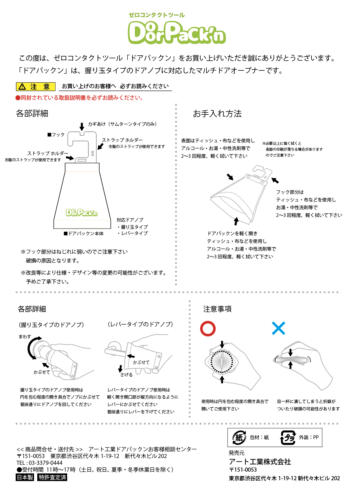 イベント・展示会やサイン・ディスプレイを手掛けるアート工業株式会社(本社:東京都渋谷区 代表取締役社長:岡野 彰)は、この度コロナ対策グッズとして【丸ノブも回せる最強マルチドアオープナー ドアパックン】絵師シリーズを(https://www.rakuten.co.jp/artbros/)を、2020年11月1日(月)よりネット販売開始します。