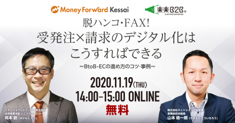 新型コロナウイルスの流行が追い風に加速する企業のデジタル・トランスフォーメーション(DX)。卸取引の受発注業務もデジタル化(BtoB EC化)する動きは、既に全国に広まりつつあります。本セミナーでは卸受発注業務のDXを進めるために、新型コロナの影響を受けて激変を続ける市場に在りながら、売り上げを伸ばしている企業が出現している「なぜ」に切り込み、BtoB EC化(受発注取引のWEB化)が持っている「売り上げ伸張の鍵」を探るクロストーク形式のオンラインセミナーを2020年11月19日(木)14:00に開催いたします。