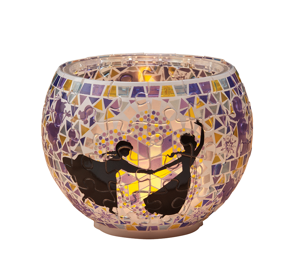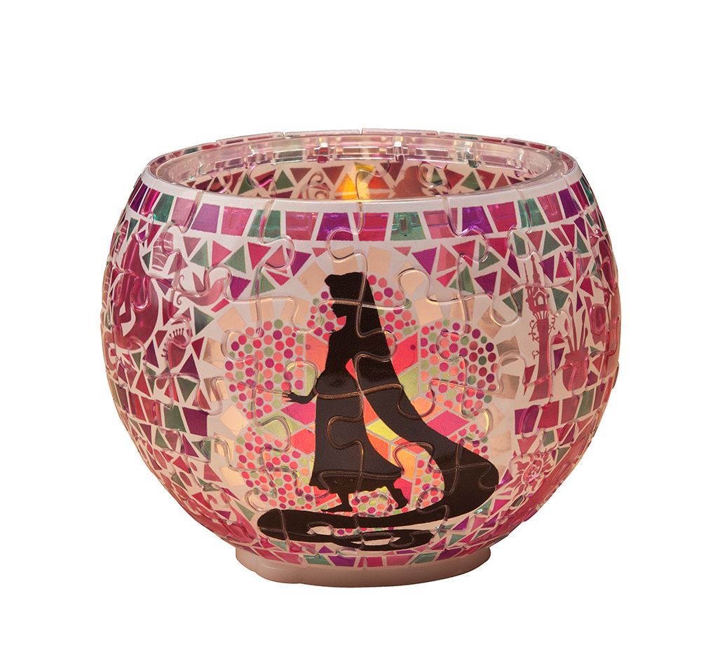 【ランプシェードパズル】は透明ピースの立体パズルです。完成後、付属のLED台座をつけるとキャンドル調のルームライトになります。スイッチは息の吹きかけでON・OFFとなり、その光も自然な瞬きがあるので、まるで本当のキャンドルのようです。ピース数は80なので、初めてパズルを楽しむ方でも、それほど難しくなく完成させることが出来るでしょう。そのデザインはモザイクガラス調デザインのディズニープリンセスで、モザイクランプのようなです。他にもムーミンなどのデザインを用意していますので、これからの季節のプレゼント用途にも最適です。