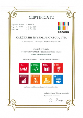 中堅中小企業の経営・人材・組織戦略をサポートする(株)カケハシ スカイソリューションズ(本社:東京都新宿区、代表:中川智尚)は、SDGsに取り組む企業が取得できる新しい認証機関である一般社団法人日本ノハム協会より2020年10月19日付で「ノハム認証」をいただくことができましたのでご報告いたします。
