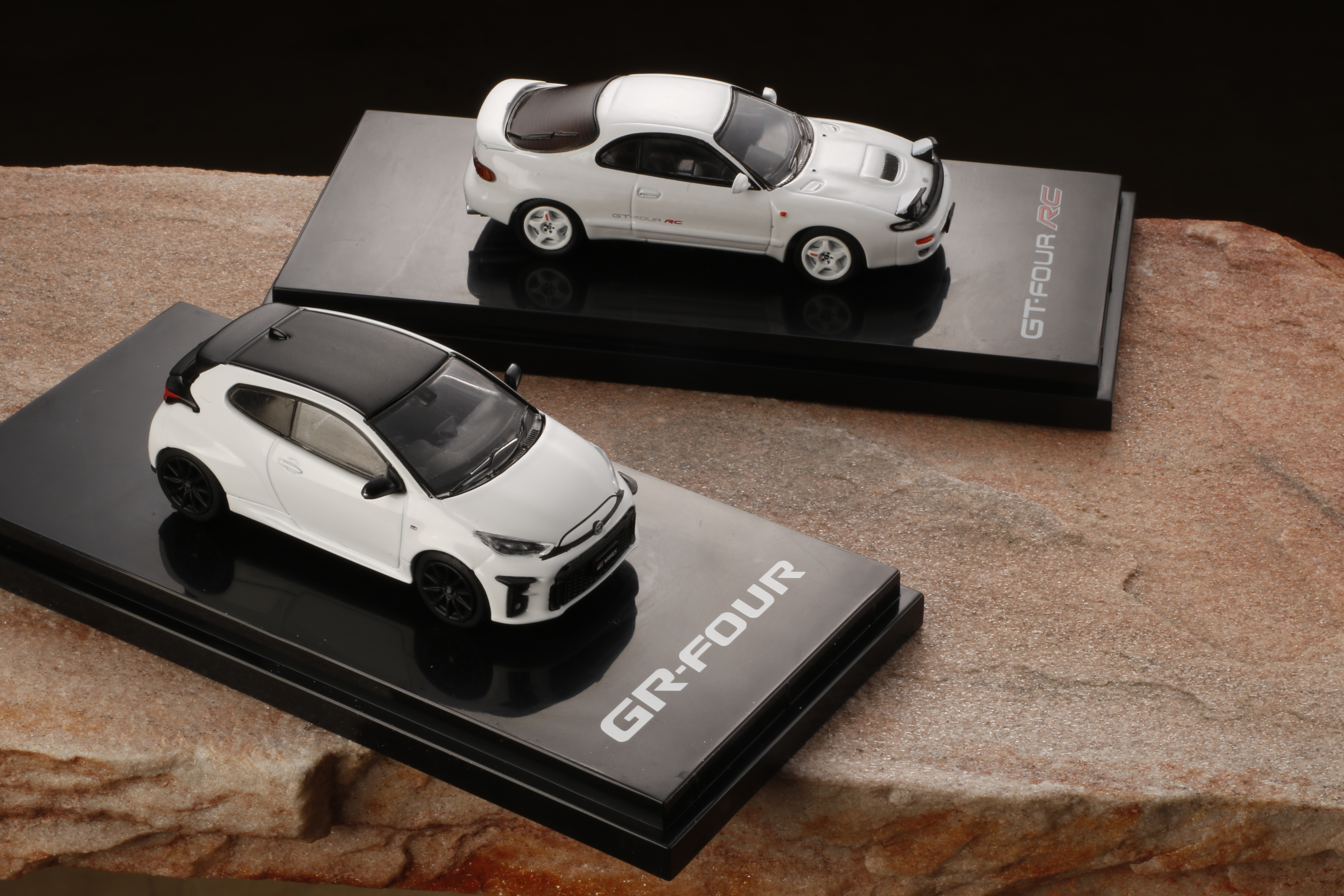 ▲1/64 Toyota GR YARIS RZ(左)、1/64 Toyota CELICA GT-FOUR RC ST185(右)