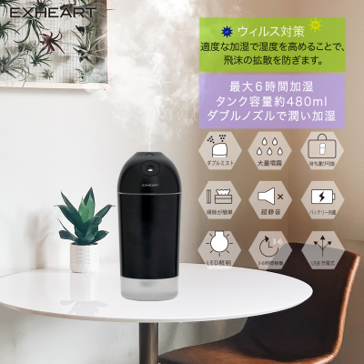 場所を選ばす使用可能なコードレスタイプ、ポータブルミスト加湿器を販売開始致します。
