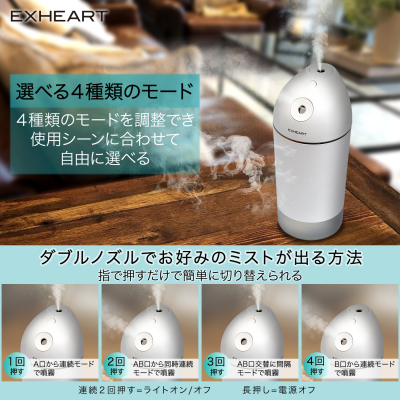 ・ダブルミストで乾燥対策:ダブルノズルで大量の微細ミストが放出されますので、パーソナル空間を効果的に加湿します。また、適度な加湿で湿度を保ち、ウィルス対策にも効果的です。