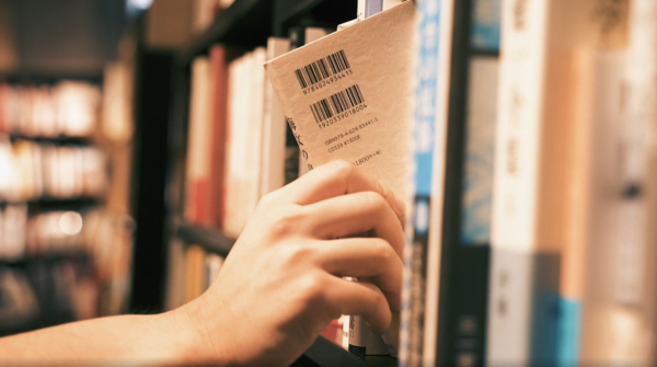 本と目が合い、棚から引き出して、手に取る。本との出会いの機微を切り取っています。