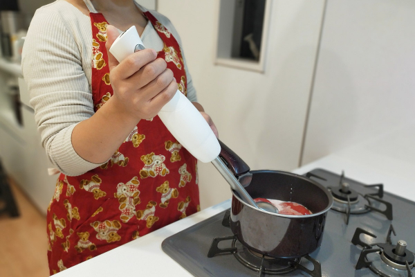 混ぜる・潰す調理に役立つブレンダーアタッチメントは、スープ作りやドレッシング作り、ピューレやペーストづくりに。