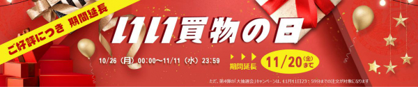 (4)抽選で注文代金100%還元チャンス(11月11日23:59分までの注文に限って対象になる)