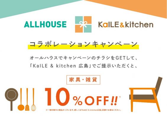 オールハウスでサービスを受けられた方限定に、カイルアンドキッチン広島店でのお買い物が10%OFFになる割引チケットをご進呈いたします。