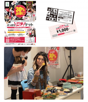 「さっぽろごチケット」のプレミアムチケットは、札幌市内の映画館・ボウリング・ゲームセンター・ ライブバー・メイドカフェなどのエンタテインメント施設と、居酒屋・BAR・ラーメン・ジンギスカン・お弁当などの飲食店で利用が可能。札幌市飲食店等グループ販売促進支援事業として行われ、10,000円で13,000円使える30%お得なプレミアムチケットを発売し、対象店舗にて2021年1月31日まで有効です。