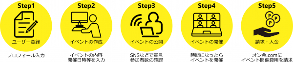 株式会社Active Innovation(本社:大阪府大阪市 代表取締役:中村 光宏)は、2020年11月18日より、オンライン飲み会、オンラインスクール、 オンラインイベントを誰でも簡単に企画・開催することができるサービス「オン会.com」(https://on-kai.com/)を開始します。イベント企画者は、自分の好きなことや得意なことで簡単にイベントを開催でき、有料にすると新たな収入源を得ることができます。また、イベント参加者は、家に居ながら「共通点を持つ人と知り合いたい」「あの人を応援したい」「あのテーマについてもっと詳しく勉強したい」等、好きなイベントに簡単に参加することができます。「オン会.com」は“人と人をつなぐ”情報発信サービスです。