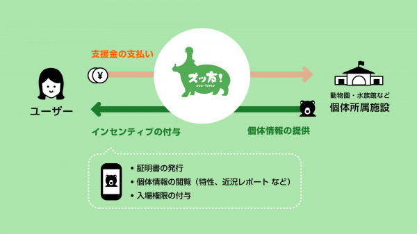 このような現状の中、動物展示施設がリスクなく始められる方法で”人々が楽しみながら動物展示施設を進化させられないか”という想いが芽生え、サービスの立ち上げに至りました。