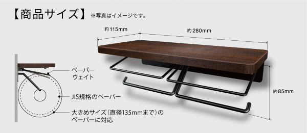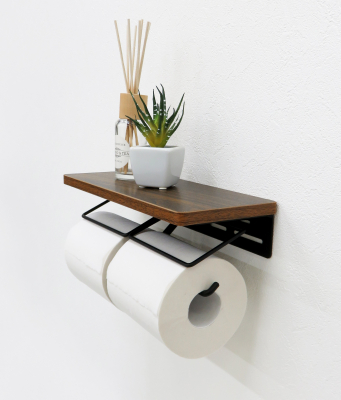 品名:ウッド&スチール棚付ペーパーホルダー2連