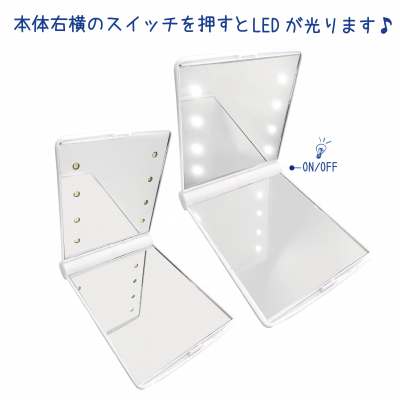 コインやICカードなどの小物を入れられて便利なマルチクリアケースや、鏡の周りにLEDライトがついているので暗い所でも