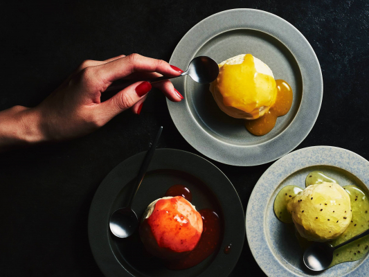 華やかな香りでジューシーな甘さがやみつきの「嫉妬マスカット」と、熟した果肉の柔らかさとプチプチとした食感がクセになる「傲慢イチジク」。冬にぴったりのリッチな味わいです。