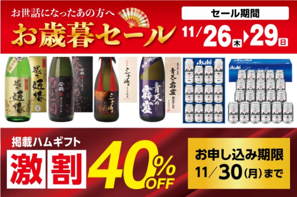 全国に179店舗で酒の専門店をチェーン展開する株式会社リカーマウンテン(本社:京都市)は、11月26日(木)~29日(日)の4日間、深夜営業店舗を除く117店舗で「お歳暮セール」を開催いたします。