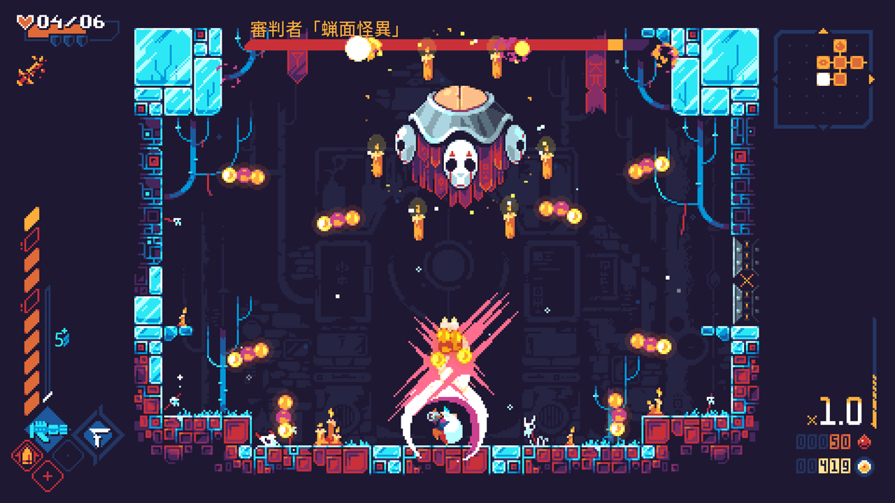 緻密にデザインされたピクセルアートと、美しい色彩で作られた世界、直感的なUI、オリジナリティー溢れる敵の攻撃方法など、緊張感とスリル満載な「スカージブリンガー」は、Nintendo SwitchTMより12月3日(木)から正式に日本語版の配信が決定した。