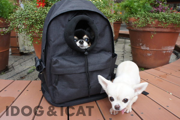 カジュアルでオシャレなリュックキャリー。愛犬が外を覗く姿に癒されます。