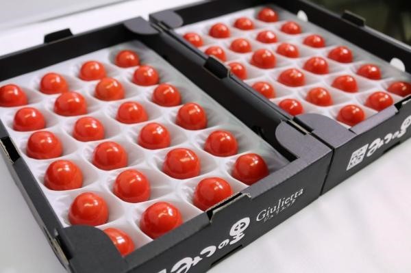 高級ミニトマト『Giulietta-ジュリエッタ-』は一部の百貨店やアンテナショップでのみ販売される、たいへん希少なミニトマトです。『Giulietta-ジュリエッタ-』は「プチぷよ」という品種のトマトをみつファーム独自の肥料配合により栽培された、実太りが良く糖度の安定した商品です。また、赤ちゃんのほっぺのような感触が特徴です。酸味は強くなく、糖度が高いため、甘さを強く感じることができ、それでいて後味はすっきりとしています。果皮が柔らかいため、一粒まるごと食べれば口の中で皮が溶け、ジューシーな食感がひろがります。