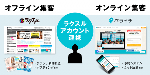 ペライチとラクスルは顧客基盤やデータの連携によって、顧客にシームレスなオンラインとオフラインの集客手段を提供してまいります。
