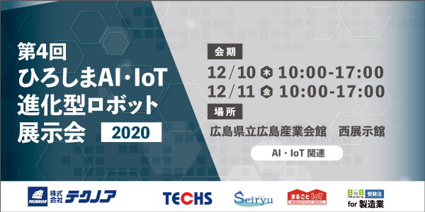 株式会社テクノアは、12/10・12/11に開催される「第4回ひろしまAI・IoT進化型ロボット展示会」に中小製造業様向け生産管理&IoTソリューションを出展いたします。