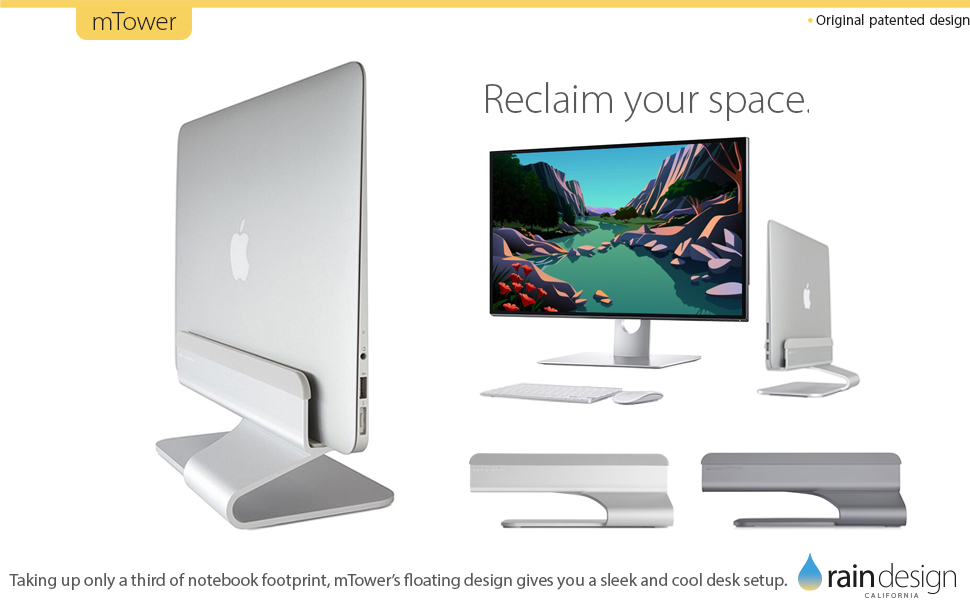 コンパクトなデスクでも広く使えて、スペースを有効活用しながら、インテリアにも馴染むおしゃれな外観、分厚い4mm厚のワンピースアルミニウムから削り出した美しいソリッドなデザインが特長のmTowerは、2012年12月に発売以来、ユーザから高い評価を獲得。2020年にも米国と英国(Macworld UK, imore US)でBest MacBook Stands に選定されています。
