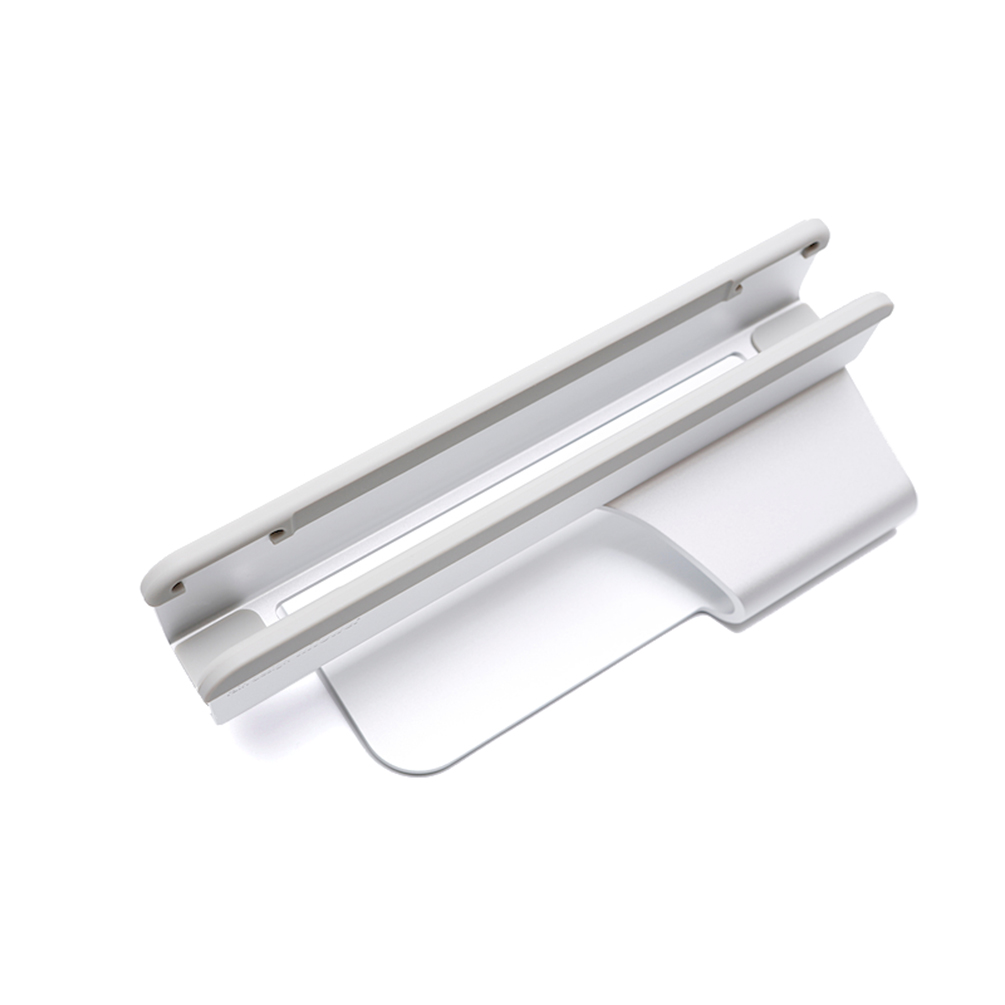 * デスクの上でMacBookをしっかりと支え、安定して設置出来る、幅11cm、奥行き21cmの広域平面ベース|MacBookと同色同素材|生産国:台湾