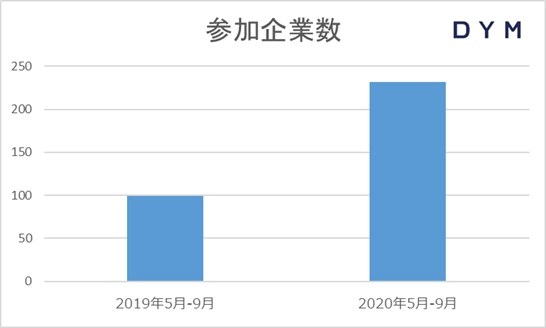 2019年5~9月は参加企業数が合計で99社のところ、2020年5~9月は232社が参加しました。(※図1)