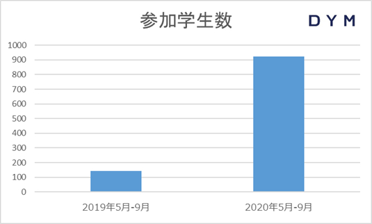 また、コロナ禍で将来に不安を抱く学生の積極的な参加も見受けられました。2019年5~9月は143名の理系学生が参加しましたが、2020年5~9月は923名が参加し、昨年に対して645%となっています。(※図2)