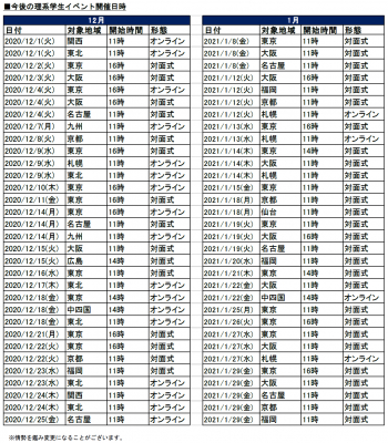 WEB事業や人材事業、海外医療事業等を行う株式会社DYM(読み:ディーワイエム、本社:東京都品川区、代表取締役社長:水谷佑毅)は、理系学生と企業のマッチングイベント『Meets Company理系限定イベント』を、2020年12月~2021年1月末日まで、対面形式・オンライン合わせ、全国で各月32回のイベント開催を行います。