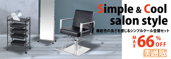 プロ向け美容材料の通信販売サイト「美通販」(https://www.bitsuhan.com)では、シンプルでスタイリッシュな空間を演出する機材のセット「機能性の良さを感じるシンプルクール空間セット」キャンペーンを開催中です。商品は最大66%OFFでお買い求めいただけます。