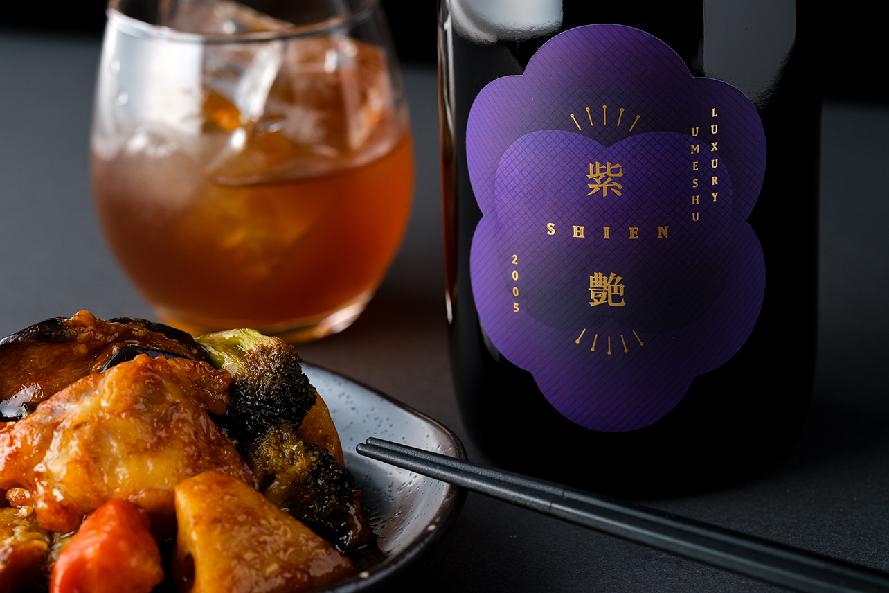 「紫艶」は、貴重な品種の梅を通常の2倍使用しています。純米酒に漬け込んだのち、15年以上もの熟成期間を経て完成しました。「パープルクイーン」の妖艶で鮮やかな色合いと濃厚な香りが存分に引き出されています。長期熟成による深いコクと酸味、口の中に残る官能的な余韻が感じられ、梅酒の女王と呼ぶにふさわしい逸品です。