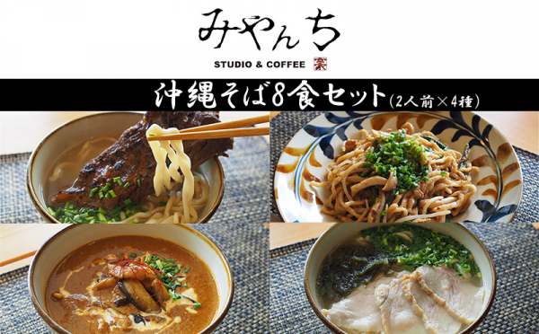 元THE BOOM 宮沢和史がプロデュースした「みやんち」オリジナルの沖縄そば8食セット(2人前×4種)です。
