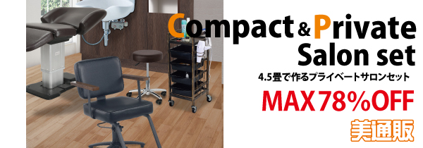 プロ向け美容材料の通信販売サイト「美通販」(https://www.bitsuhan.com)では、小さな空間でこだわりのプライベートサロンを実現する「4.5畳で作るプライベートサロンセット」キャンペーンを開催中です。商品は最大78%OFFでお買い求めいただけます。