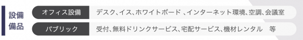 必要なオフィス家具や共用設備はセットアップ済みで引渡し、すぐお仕事を開始していただけます