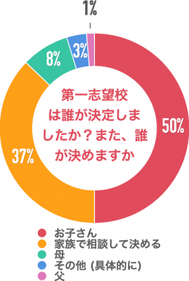 1. 自らの意思で第一志望校を決めるお子さんが5割。