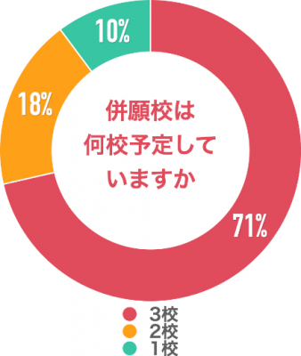 アンケート結果では、「3校」が71%、続いて「2校」が18%、「1校」が10%でした。